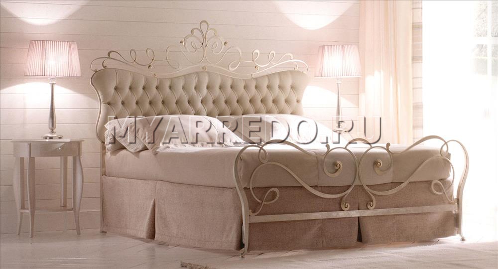 Двуспальная кровать с высоки мягким изголовьем и изножем. Наполнение - полиуретан. Возможны другие варианты отделки и обивки.